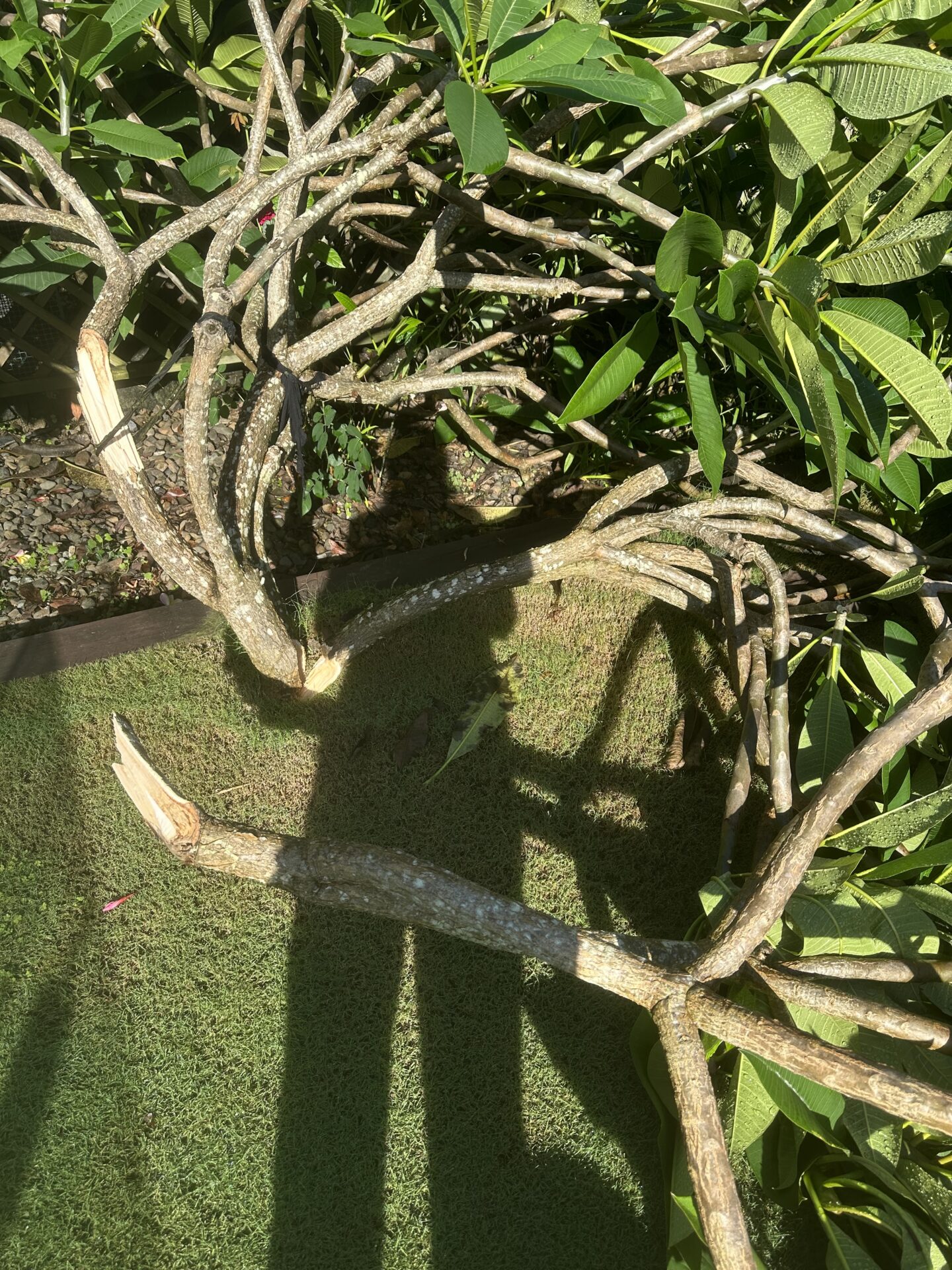 If you have a frangipani tree that needs pruning or rescuing after storm damage, we can do this for you. We can purchase the frangipani cuttings that you wish to sell (no midcuts – branches cut in 1/2 again).