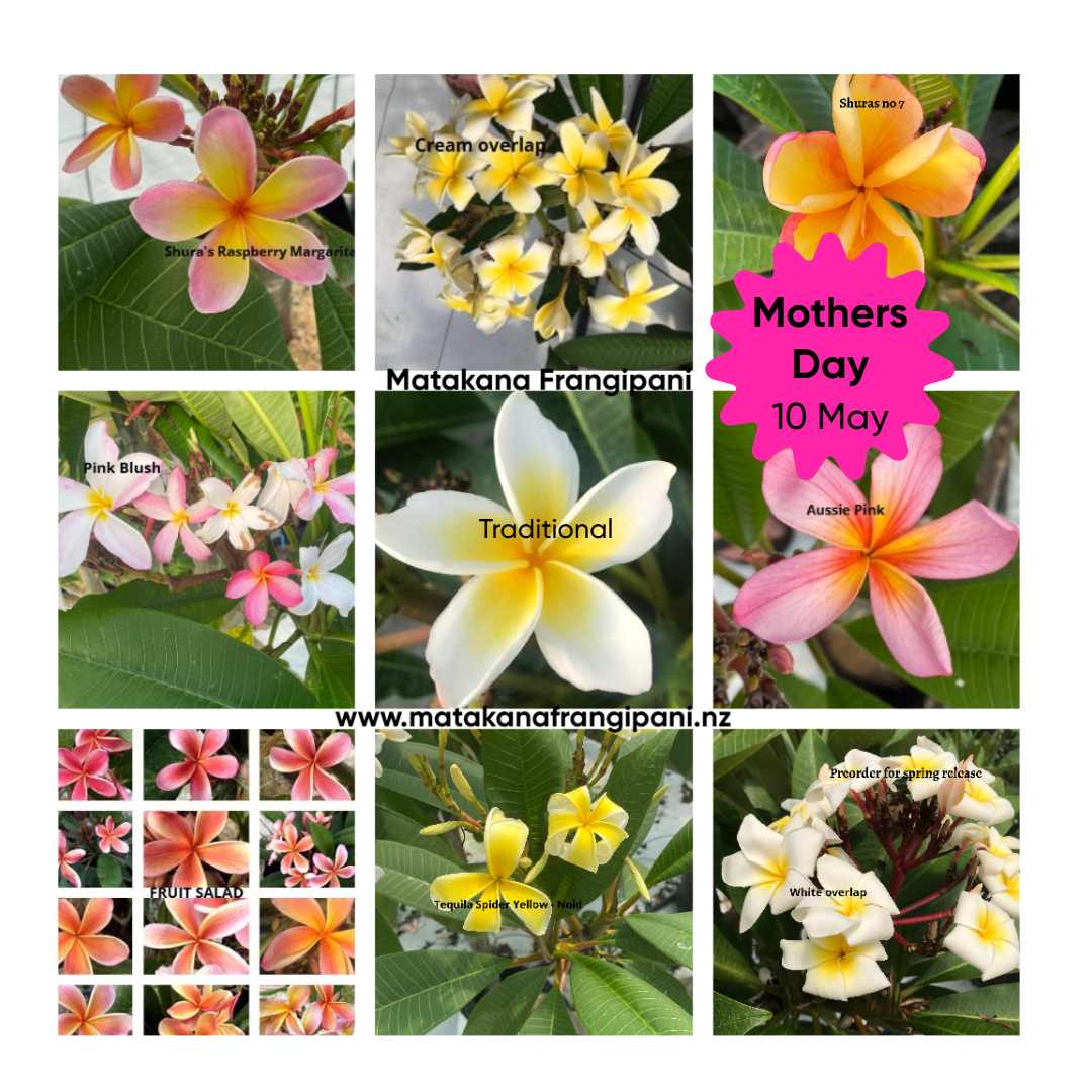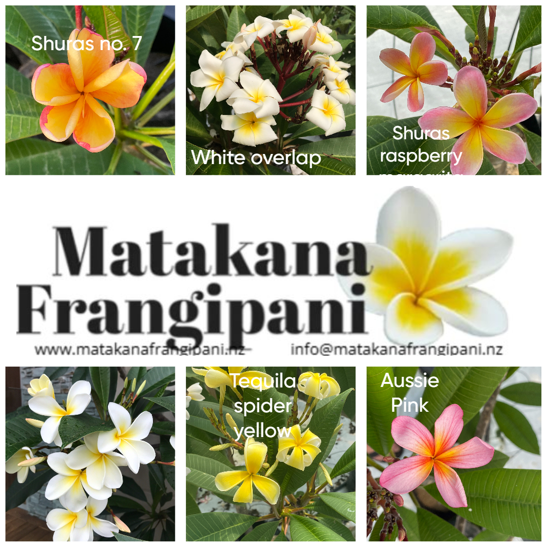 We have frangipanis still for sale, see below for colours available. In Spring (great planting time) we will have all sizes and a large variety of colours back in stock.
